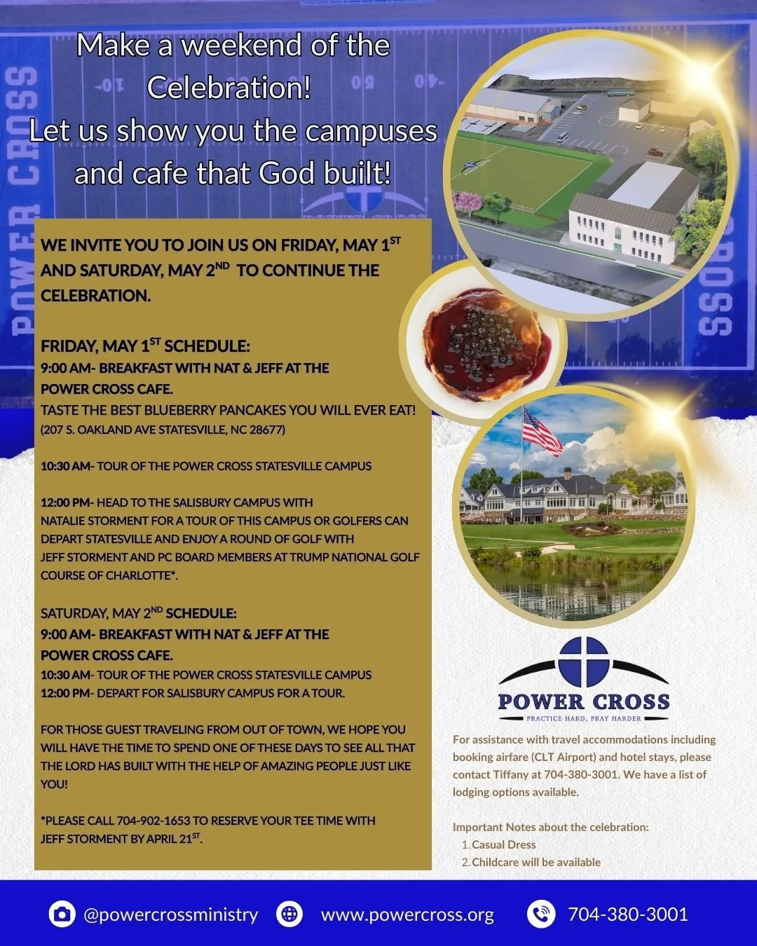 We want to celebrate with you on Thursday and then show you on Friday or Saturday all that God has done! Out of town guest- let us help you with your accommodations! Call with questions.